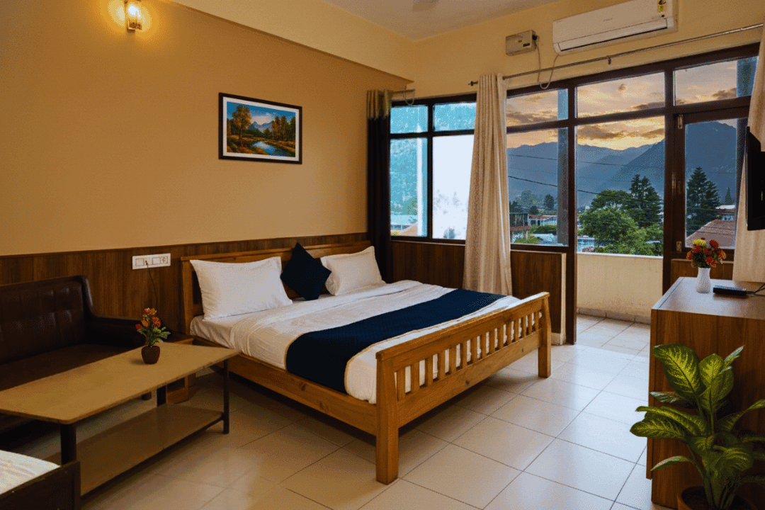 Our Deluxe Room offers a refined blend of elegance, comfort, and peaceful ambience—perfect for travellers who prefer a spacious, beautifully designed stay experience in Bhimtal.