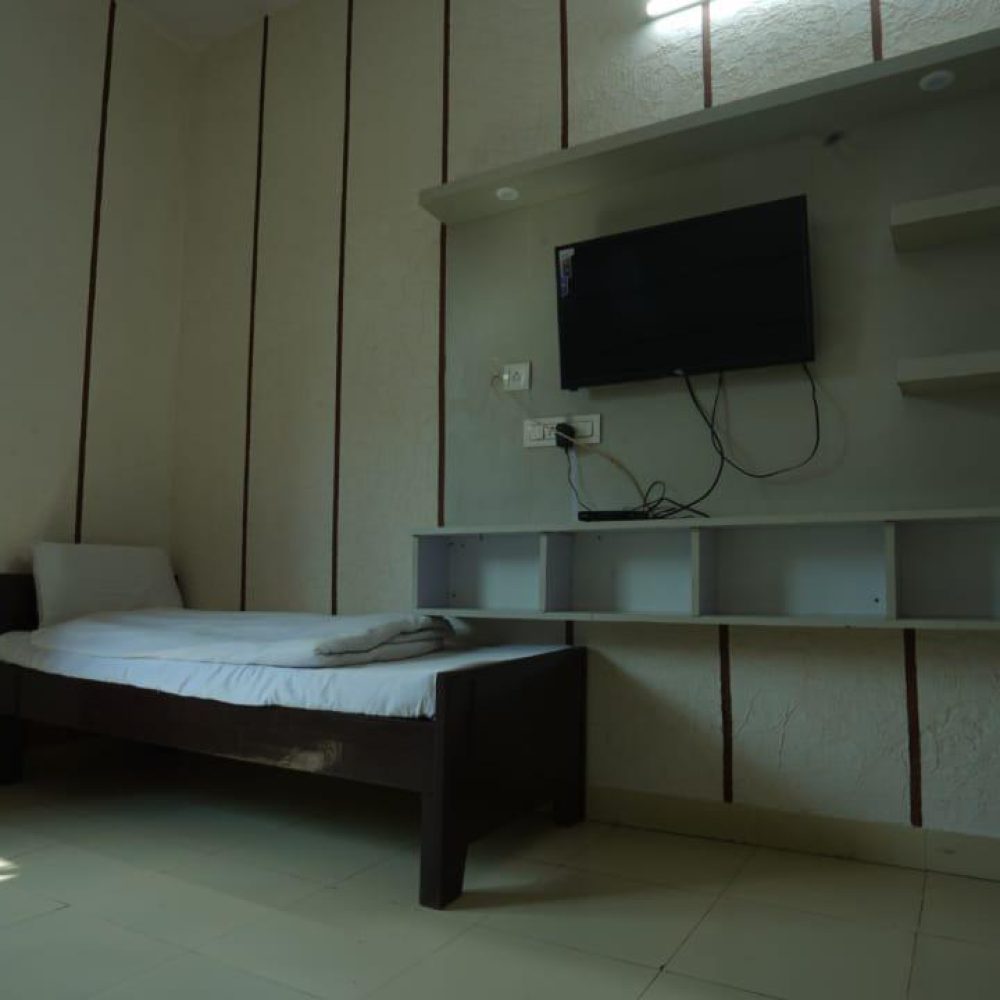 Every Deluxe Room includes free high-speed Wi-Fi, LED TV, clean attached bathroom with 24×7 hot water, fresh towels, wardrobe, side tables, comfortable seating, and daily housekeeping for a spotless environment. Large windows allow ample natural light and offer pleasant views, helping you connect with the calm surroundings of Bhimtal.
